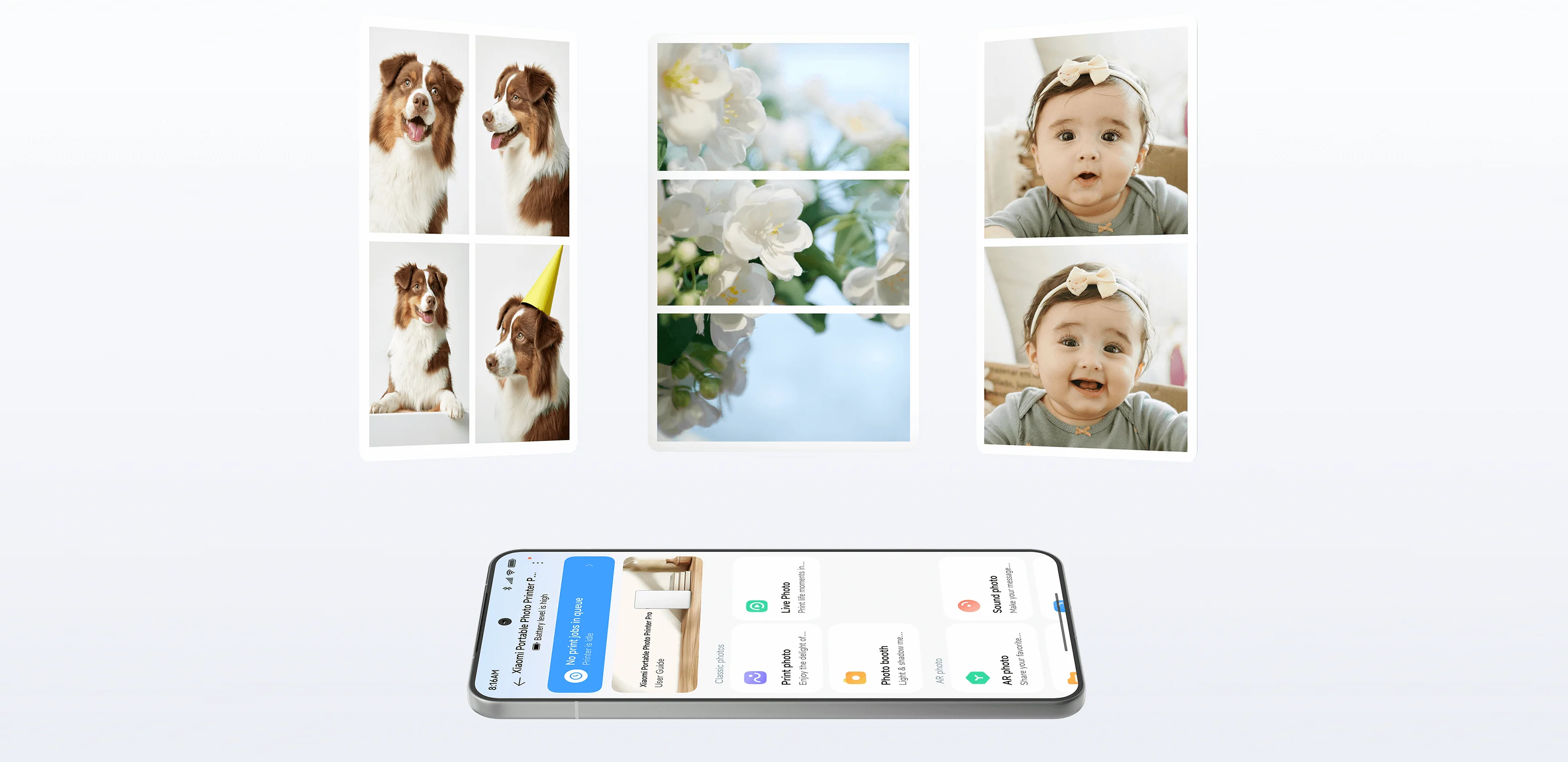 Подключение к устройствам осуществляется по Bluetooth 5.2. Управление печатью выполняется через мобильное приложение Mi Home, где можно выбрать изображения, настроить параметры и отправить фото на печать напрямую со смартфона без использования кабелей.