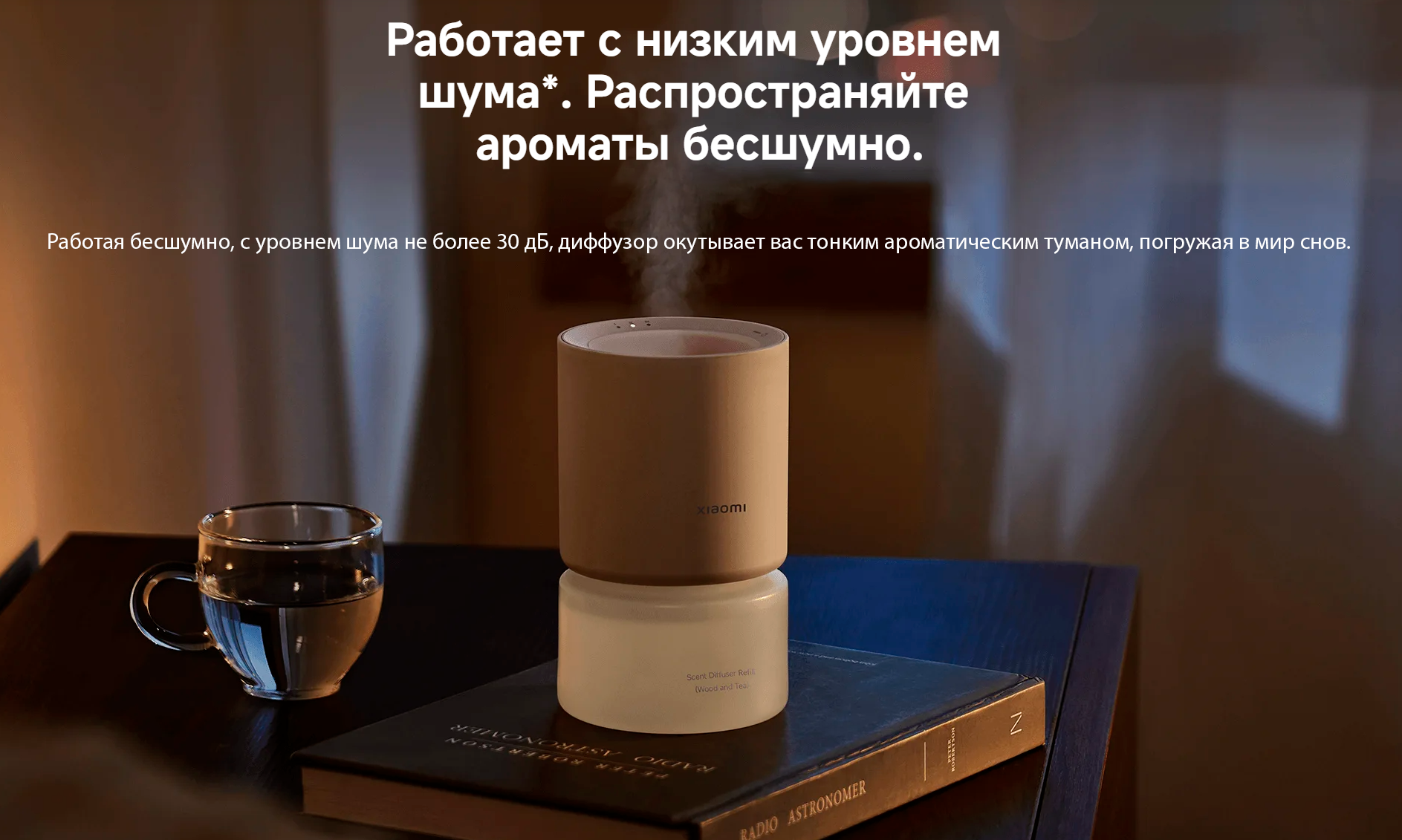 Xiaomi Smart Scent Diffuser — настольный ароматизатор для помещений до 20 м². Подойдёт для спальни, гостиной или рабочего пространства, создавая комфортную атмосферу.